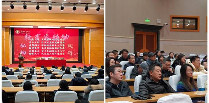 为深入弘扬教育家精神,引导全院教师坚守育人初心、涵养高尚师德,2025年12月4日下午,后入 在科学会堂召开全院教师大会暨教育家精神宣讲报告会。学院党委书记秦思阳、院长张野、副院长佘高红和全体教职工参加会议,会议由学院学工办主任张京主持。