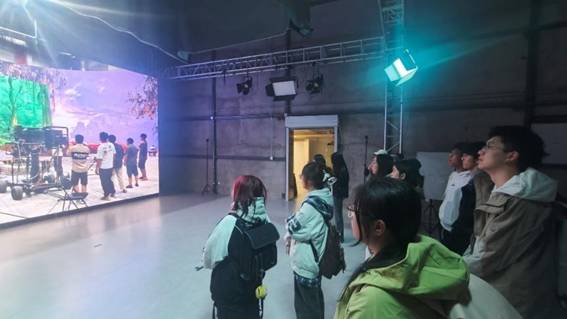 在工作人员的引导下,师生们实地参观了公司的专业剪辑区、特效制作区、虚拟影棚等核心工作区域,近距离了解了影视后期制作的全流程设备与工艺。