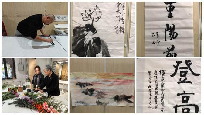 座谈结束后,老教师们兴致勃勃地投入到插花与国画创作中。插花现场,花香四溢,大家巧手修剪,将一朵朵鲜花精心搭配,创作出一个个错落有致、独具匠心的花艺作品。国画案前,墨香袅袅,老教师们或挥毫泼墨,或细心勾勒,在宣纸上描绘出的山水意趣,尽显艺术修养与生活情趣。